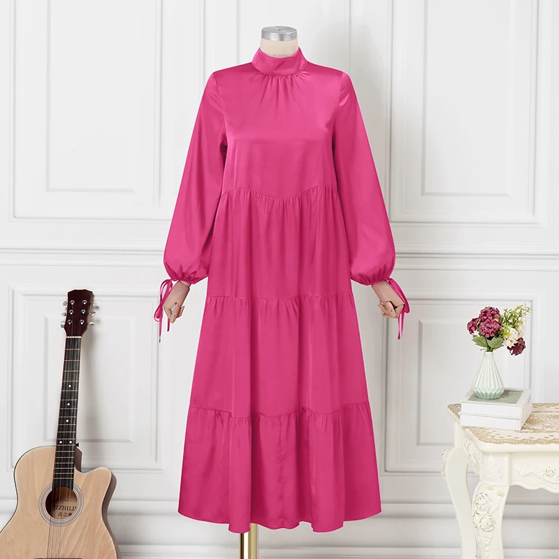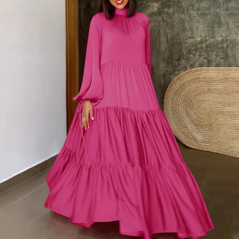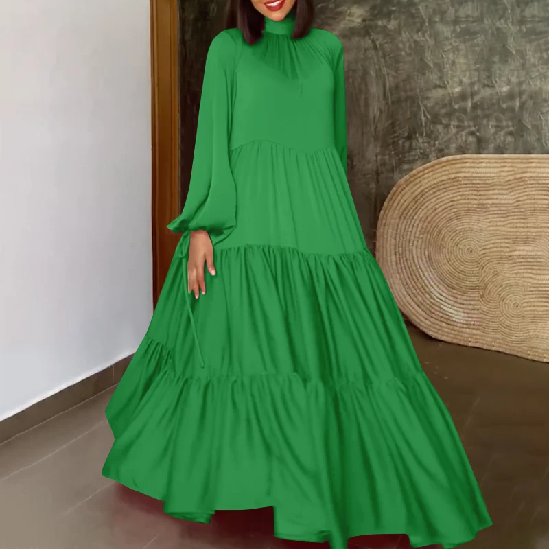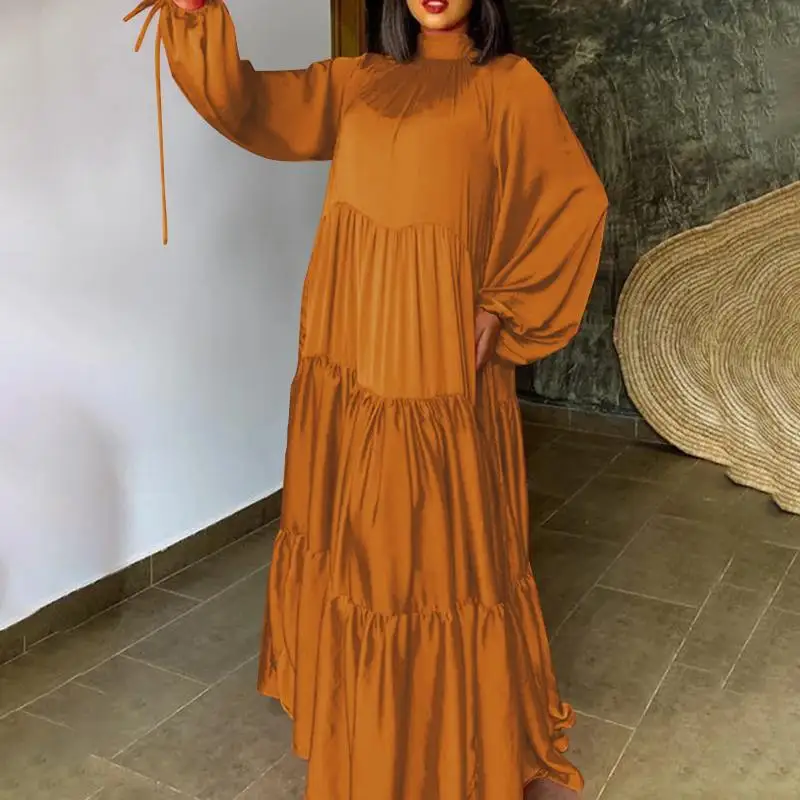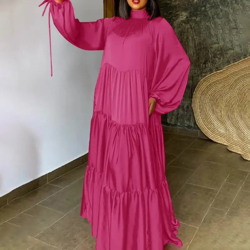 Introducing our best-selling Plus Size 5XL VONDA Women's Maxi Long Dress, designed to solve all your fashion needs. This elegant sundress features long puff sleeves, a stand collar, and a solid satin ruffled design that exudes sophistication and style. Made with premium materials, this dress is perfect for any occasion and is available in limited quantities. Don't miss out on the perfect fit for your wardrobe. Upgrade your style game with our exclusive VONDA dress today!