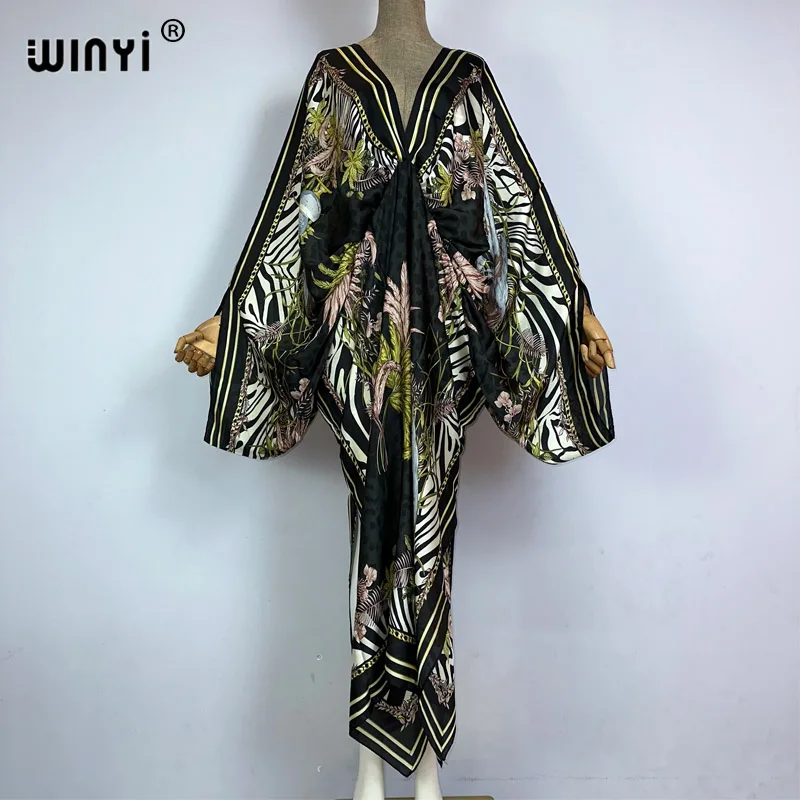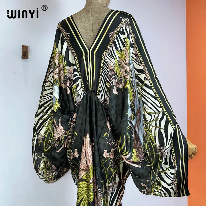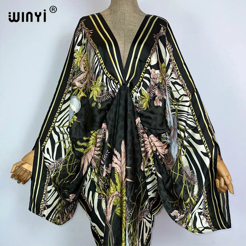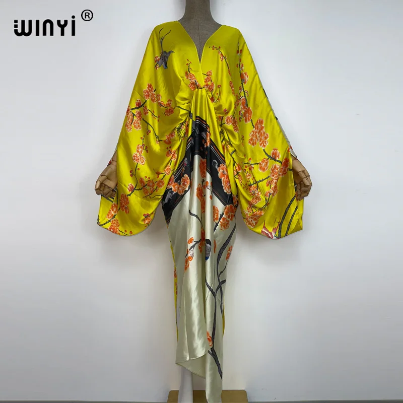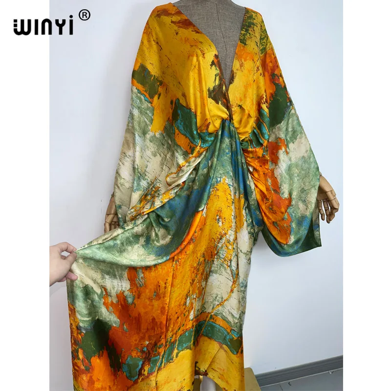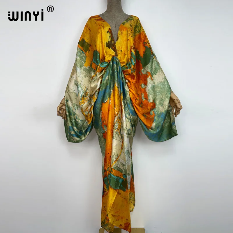 WINYI New Fashion Bohemian Deep V-neck Floral europea For Lady Free Size Loose Batwing Holiday Beach cover up Party Kaftan Dress