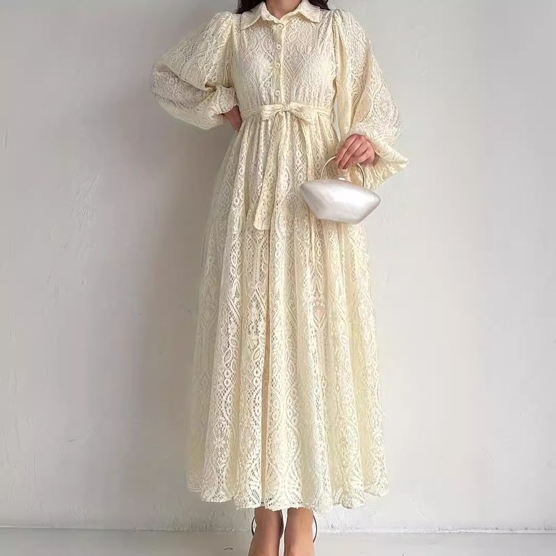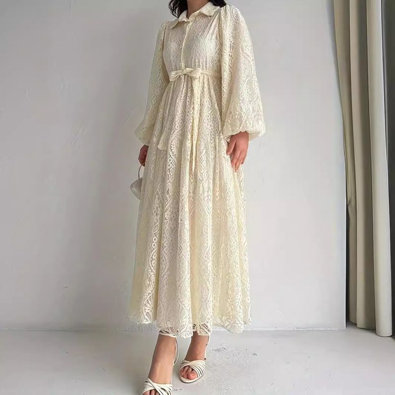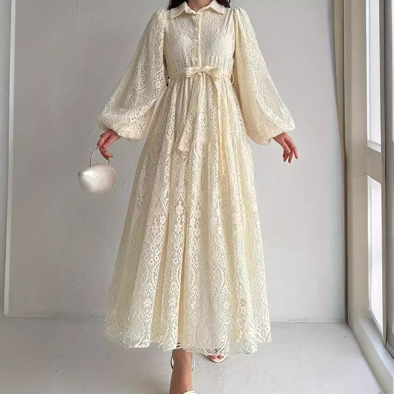 Women's Clothing M2610 ladies Muslim new hot style lace lapel robe fashionable and elegant dress