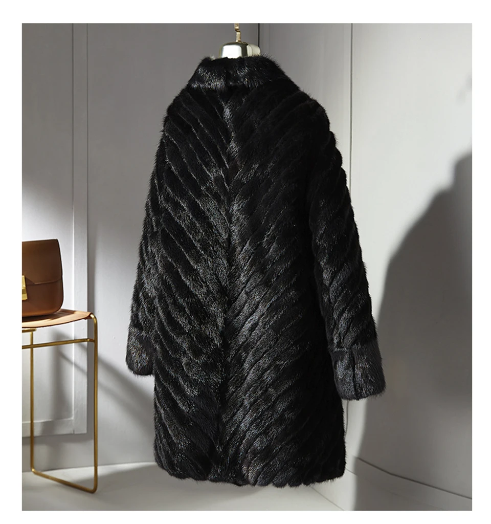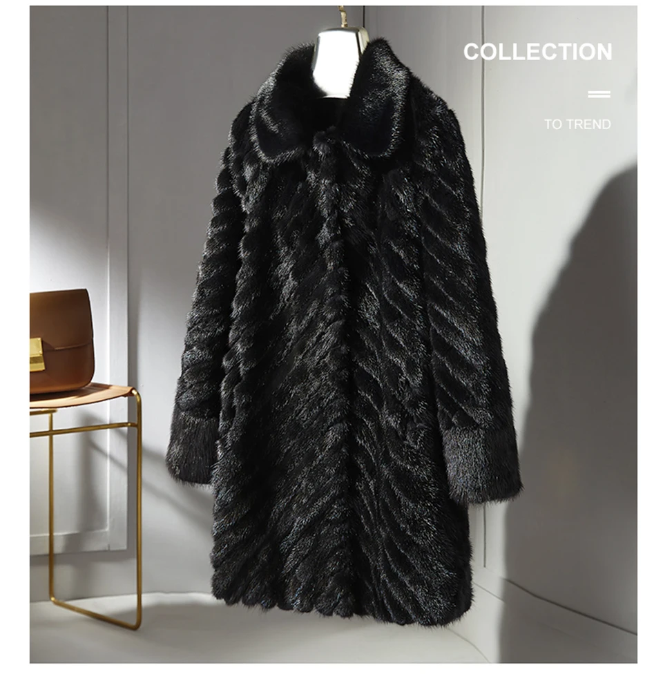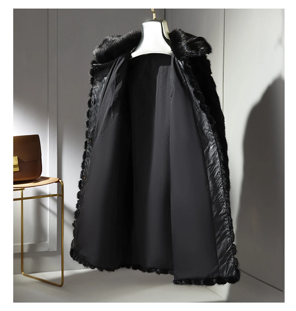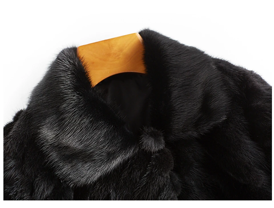 Women's Coat Real Mink Fur Jackets Long Sleeve Winter Large Warm Real Fur  Women Long Black Clothes Luxury Mink Collar Coat