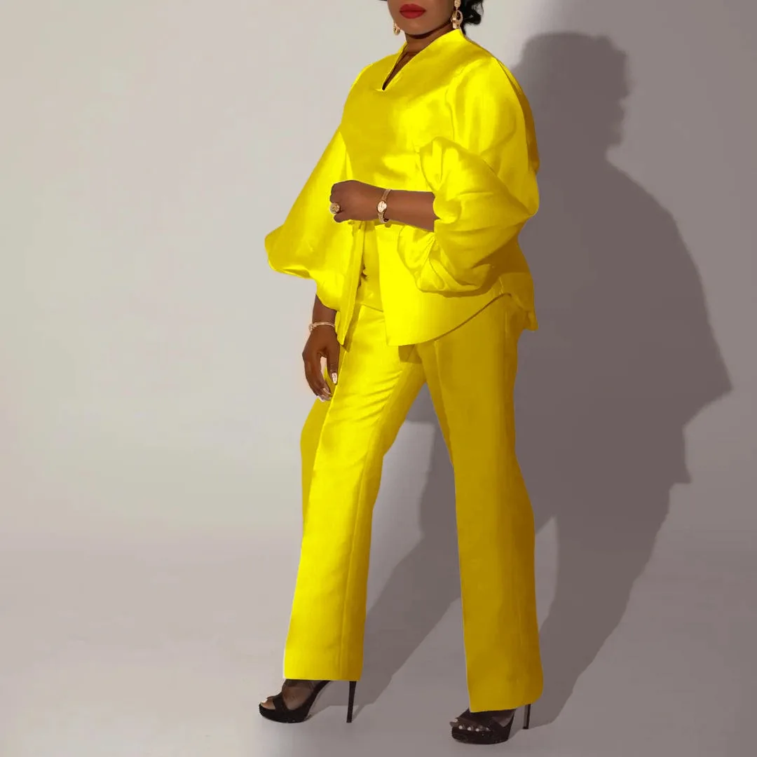 Introducing our premium Women Two Pieces Pants Sets Outfits, designed for the fashion-forward businesswoman. This stylish ensemble features a blouse and long trousers, perfect for creating a polished and professional look. Made with high-quality materials, our outfit is both comfortable and durable, making it perfect for a long day at the office. The matching sets provide a seamless and put-together appearance, saving you time and effort in choosing your work attire. Upgrade your wardrobe with our best-selling Women Two Pieces Pants Sets Outfits and conquer your workday in style. Limited time offer, get yours now!