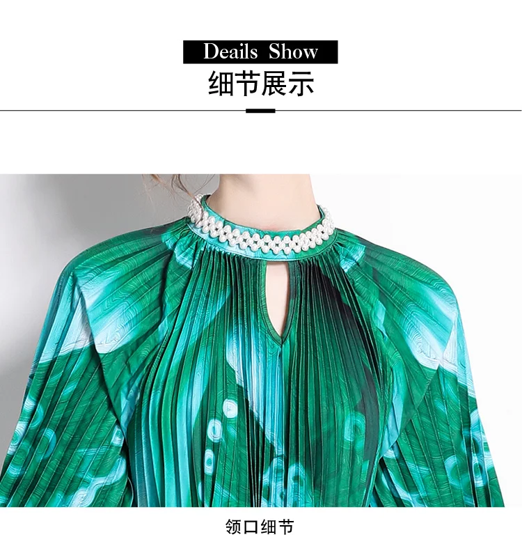 ✨ Why you'll love it - Crafted with attention to detail, this dress exudes elegance and sophistication. The beaded stand collar adds a touch of glam, while the loose fit ensures all-day comfort. The printed design and pearls belt make it a must-have for your summer wardrobe.