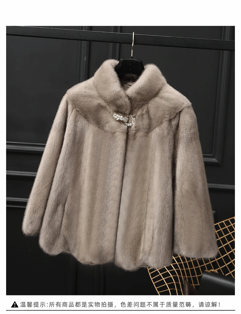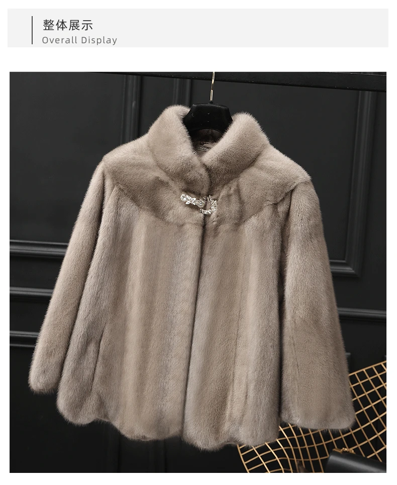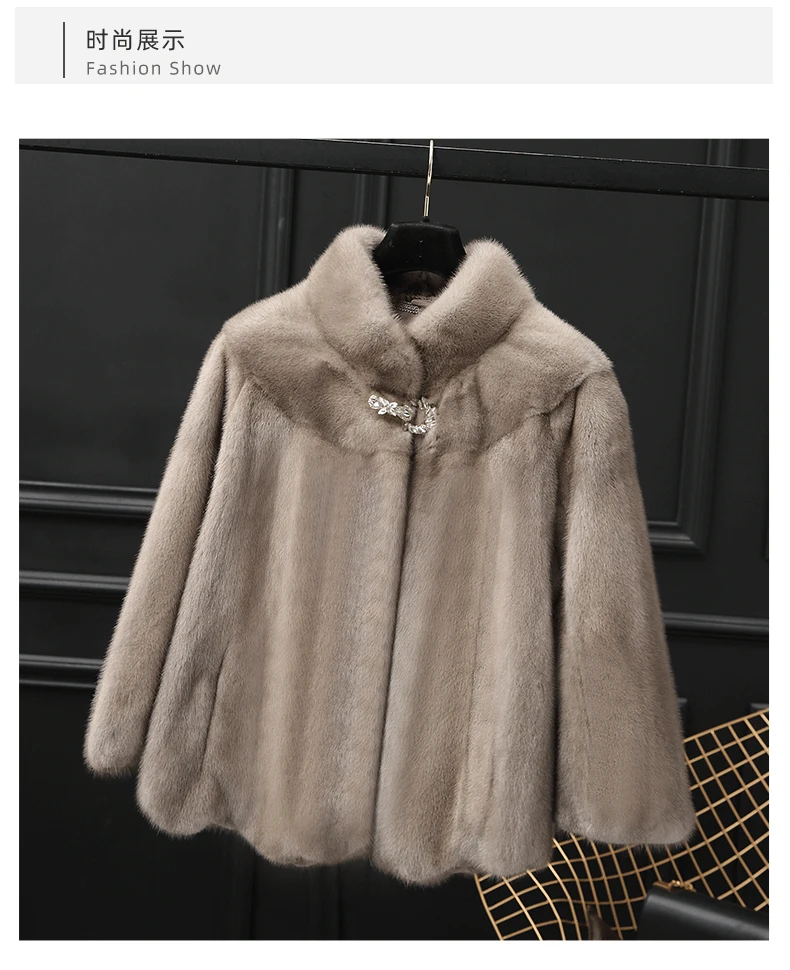 Women's Mink Fur Coat - Warm Winter Fashion Jacket with Stand Collar and Sizing Consultation