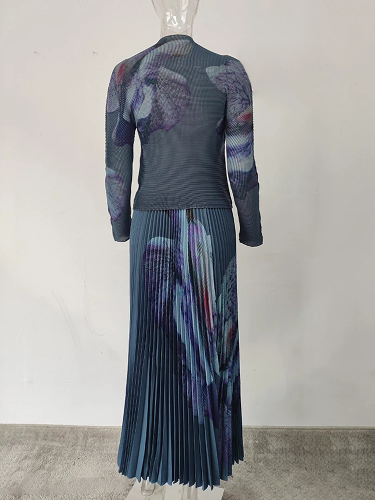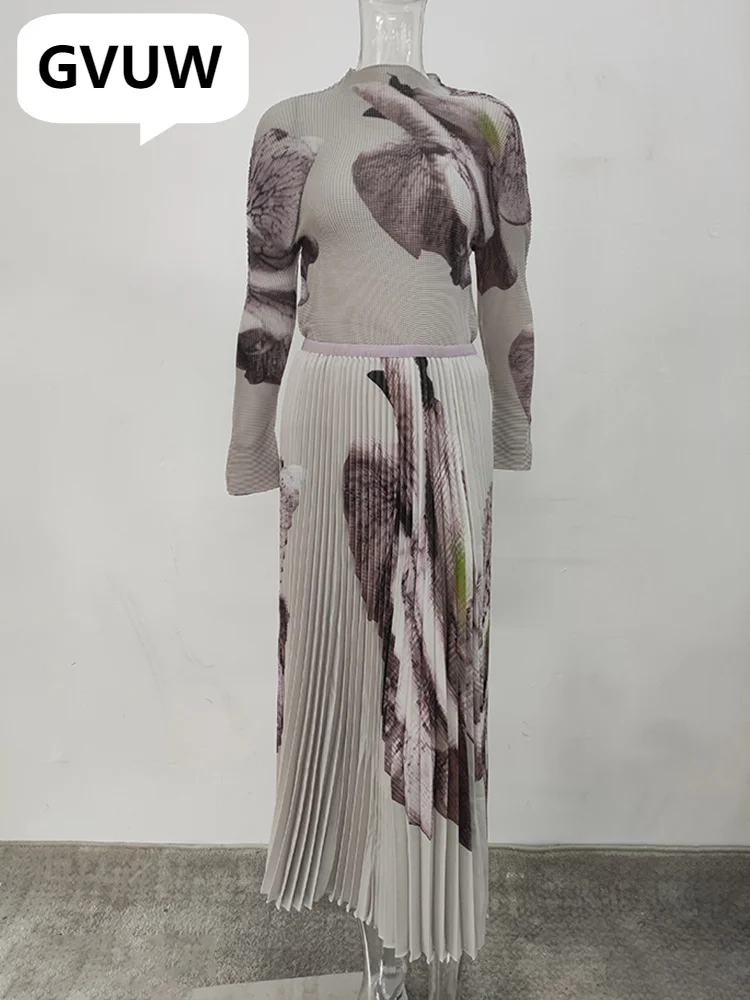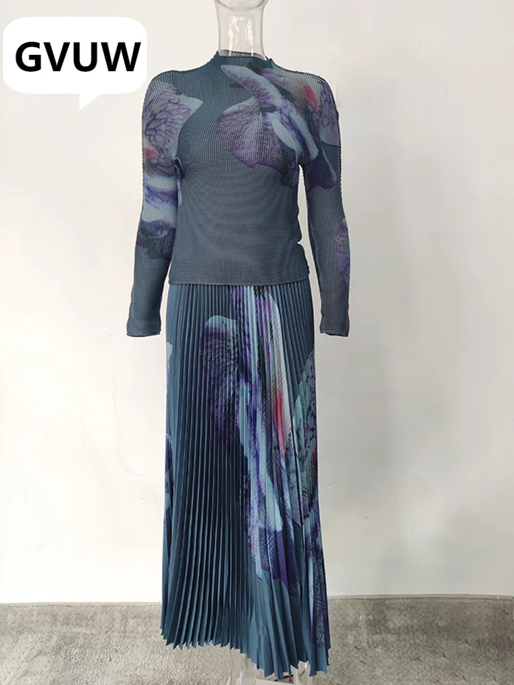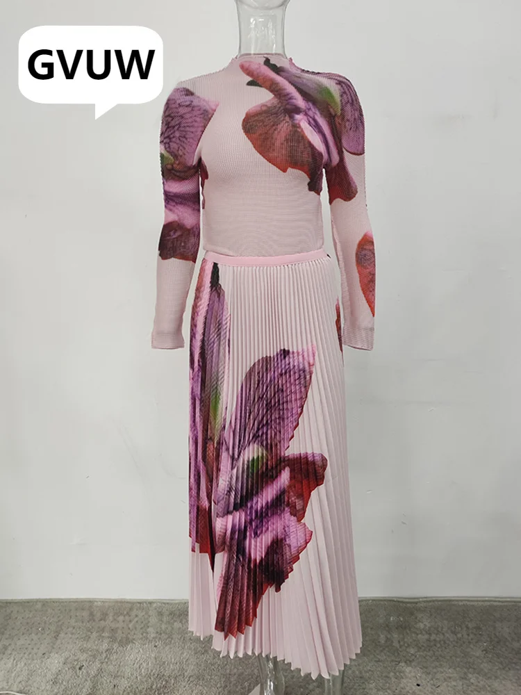 Elevate your style with the GVUW New Printing Pleated Two-Piece Set for Women. 🌟