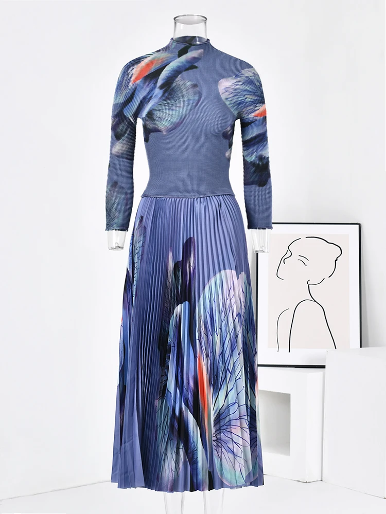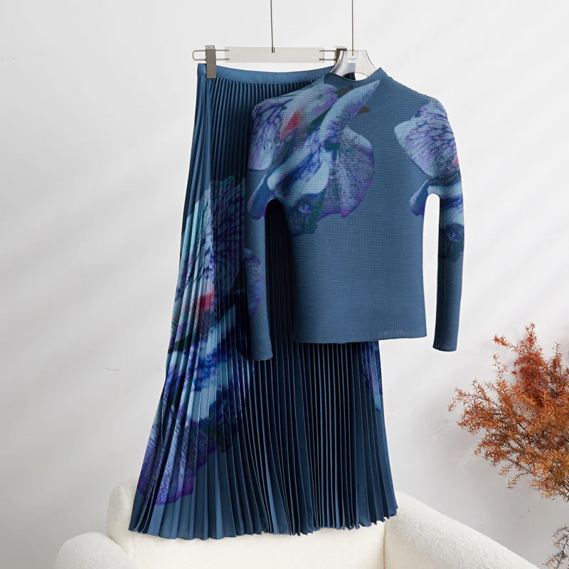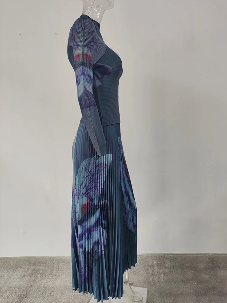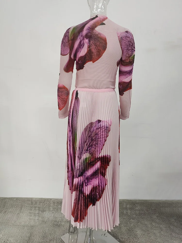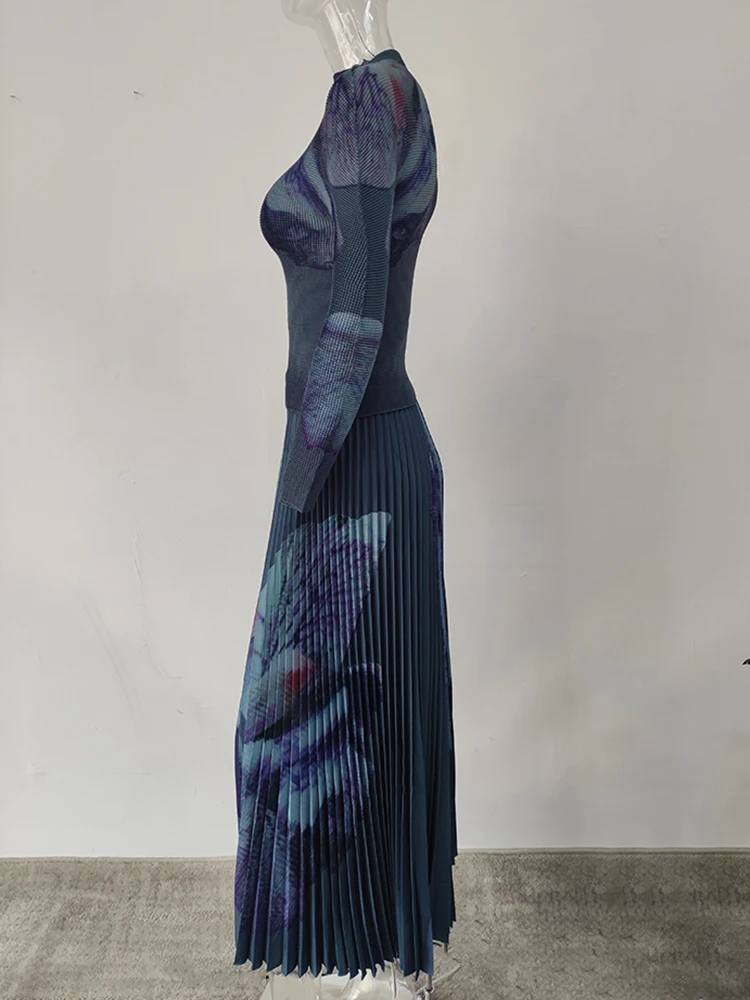 Elevate your style with the GVUW New Printing Pleated Two-Piece Set for Women. 🌟