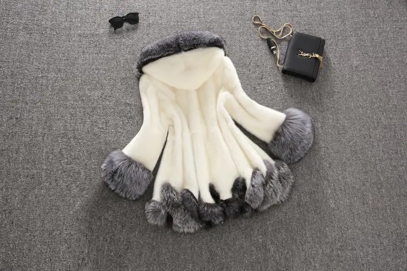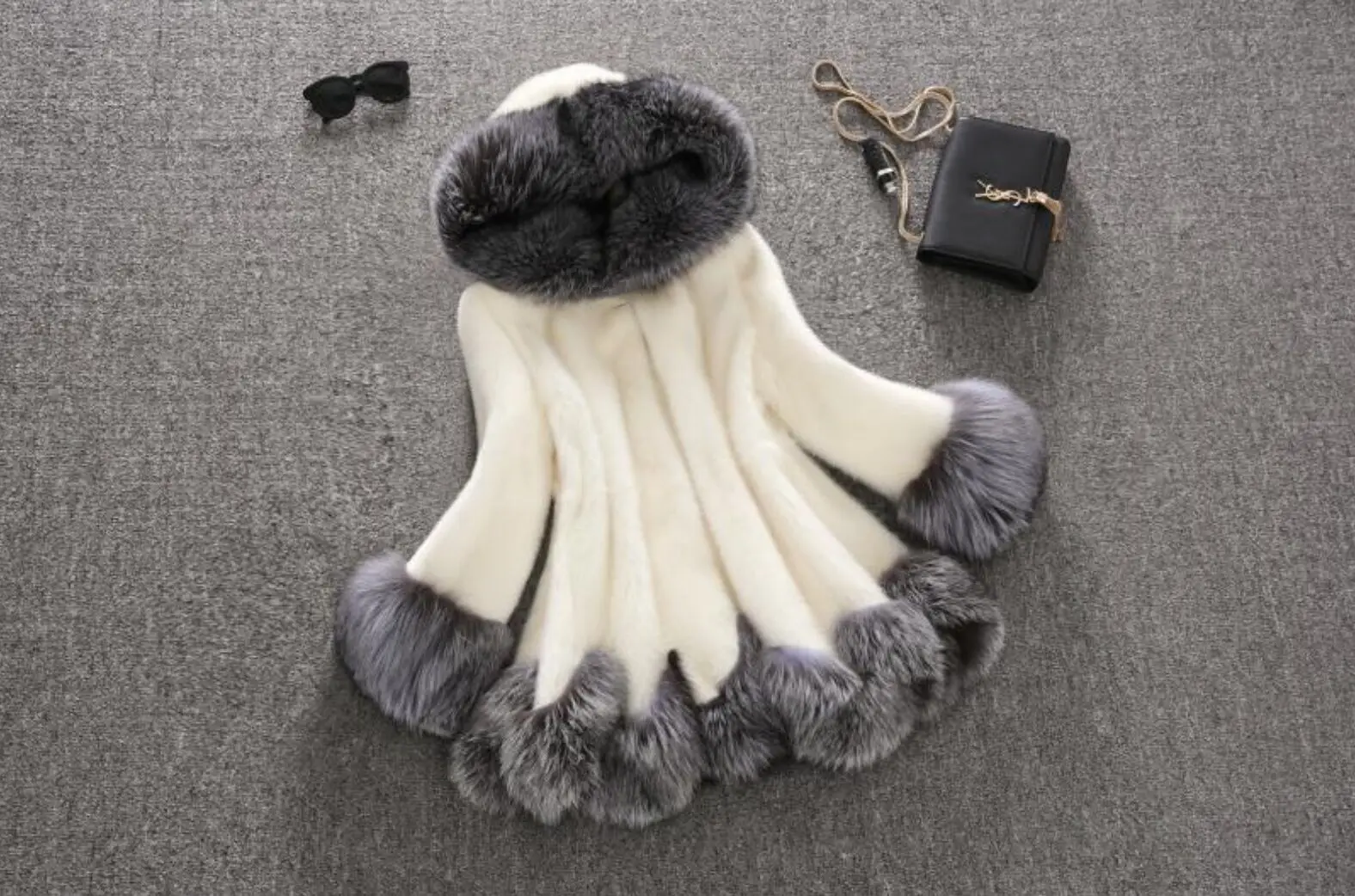 Women's Wear Real Fur Coat Gorgeous Women's White Black Mink Winter Thick Hooded Fur Jacket Long Sleeves Warm Fur Coat In Stock
