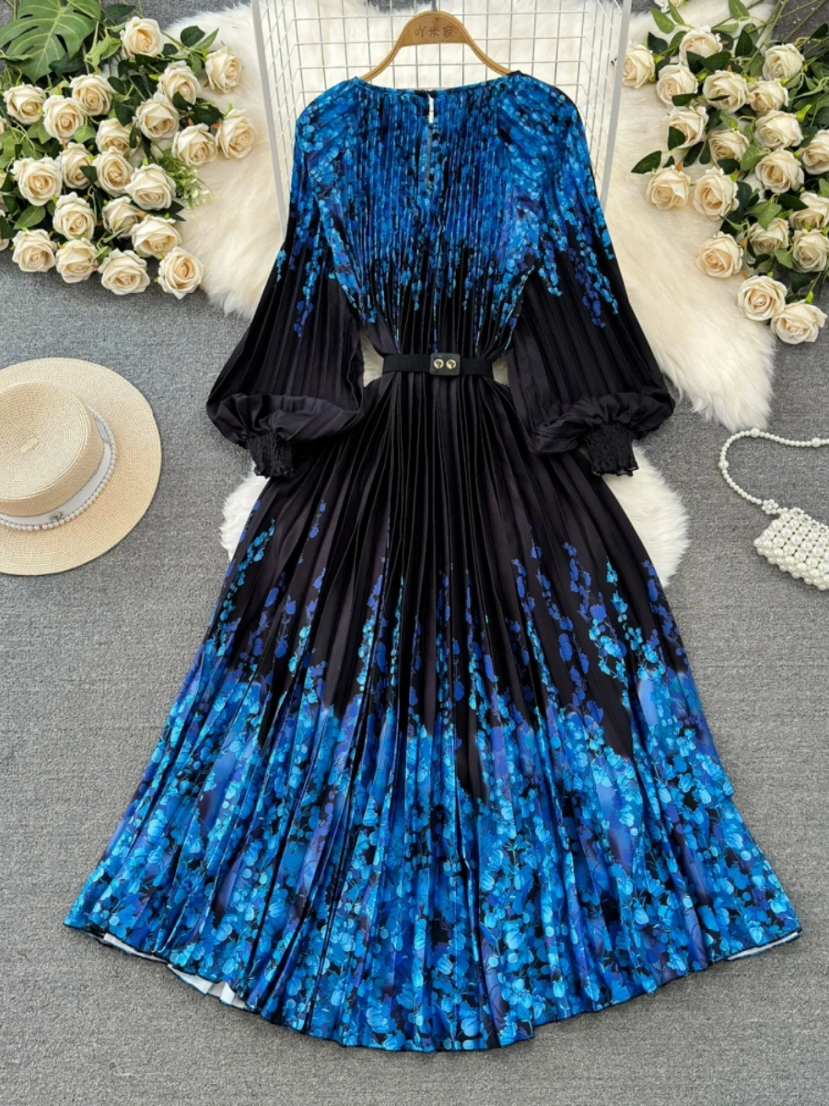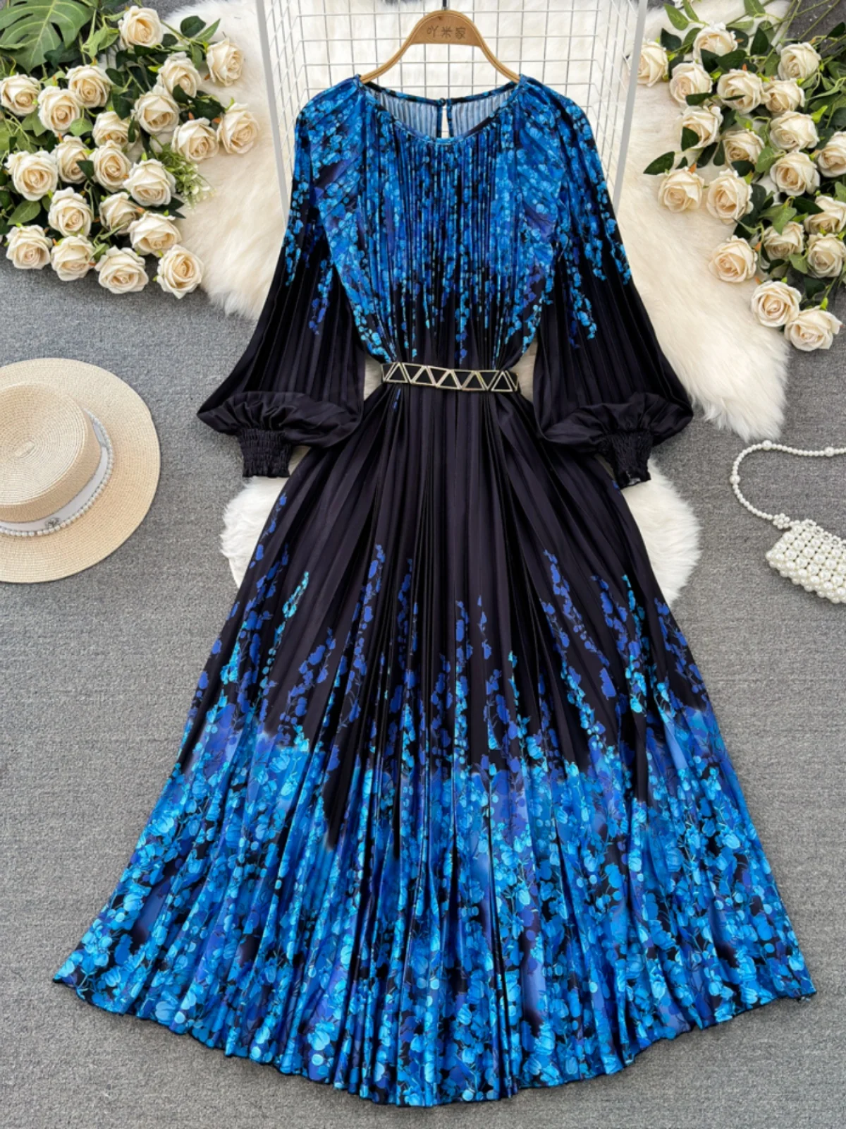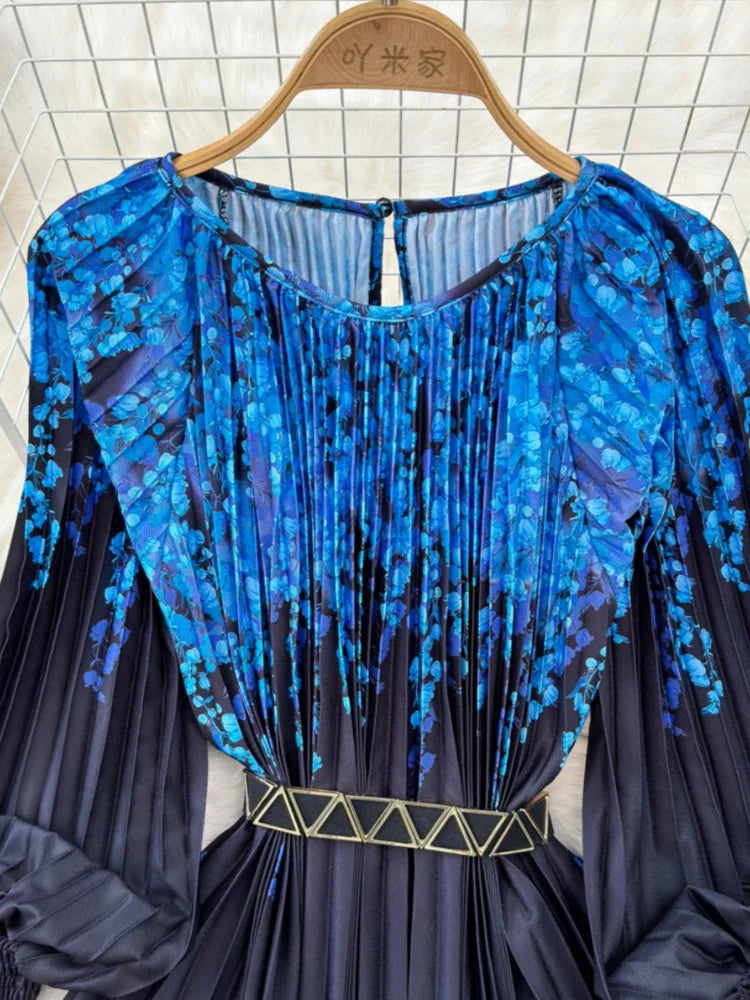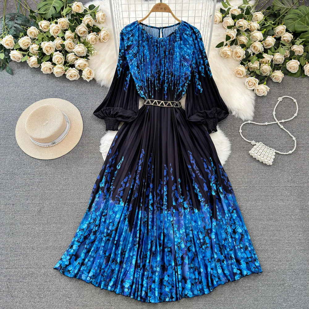 🌟 What it is - This dress is a perfect blend of style and comfort, featuring a high waist, pleated design, and a flattering A-line silhouette. The O-Neck and long sleeves add a touch of elegance to your ensemble.